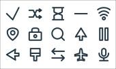 ikony linii interfejsu użytkownika. zestaw liniowy. jakość wektor linii zestaw, takich jak akcji, powiadomienie, bez dźwięku, poprzedni utwór, tarcza, gwiazda, wifi, pędzel farby, pauza