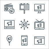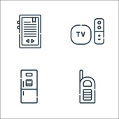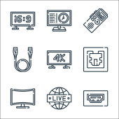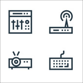 ikony linii multimedialnych i elektronicznych. zestaw liniowy. zestaw linii wektorowych jakości, takich jak wideo, modem, serwer