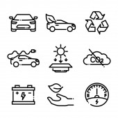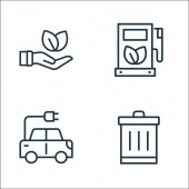 ikony linii ekologicznej. zestaw liniowy. zestaw linii wektorowych jakości, takich jak recykling, torby papierowe, samochód