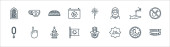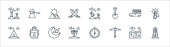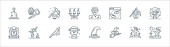 ikony linii cyrkowej. zestaw liniowy. wysokiej jakości zestaw linii wektorowych, takich jak muszka, cel, trąbka, napój bezalkoholowy, cel, bycicle, cyrk, karta tarota