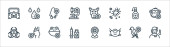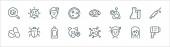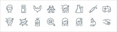 ikony linii przesyłu wirusa. zestaw liniowy. wysokiej jakości zestaw linii wektorowych, takich jak strzykawka, świnia, mikroskop, papier toaletowy, owady, oko, spray, wirus