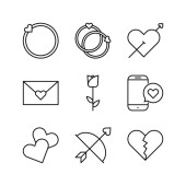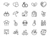 ikony linii miłosnych. zestaw liniowy. wysokiej jakości zestaw linii wektorowych, takich jak lokalizacja, naszyjnik, miłość, serce, pierścień, wieszak drzwi, balon, kwiat