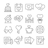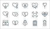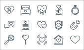 ikony linii miłosnych. zestaw liniowy. wysokiej jakości zestaw linii wektorowych, takich jak pierścień, serca, miłość, kwiat, miłość, dom, nienawiść