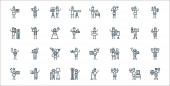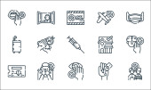 ikony linii sztuki ogólnej. zestaw liniowy. wysokiej jakości zestaw linii wektorowych, takich jak muzyk, jedwab, polityka, tancerz, socjologia, historia, gastronomia, chemia