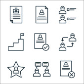 ikony linii zasobów ludzkich. zestaw liniowy. zestaw linii wektorowych jakości, takich jak puzzle, nagroda, oferta pracy, cv, kariera, promocja pracy, wywiad, klient