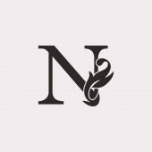 Monogram Początkowy N Litera Logo, Elegancja Czarno-białe kwiaty natury Ozdoba styl wektor projekt.
