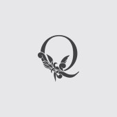 Monogram Początkowy Q List Logo, Elegancja Czarno-białe kwiaty natury Ozdoba styl wektor projekt.