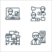 ikony linii domowej. zestaw liniowy. zestaw linii wektorowych jakości, takich jak lista kontrolna, stacja robocza, baza danych, kalendarz, praca w domu, rozmowy telefoniczne, praca, rozmowy wideo