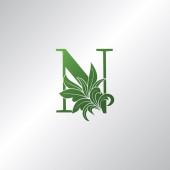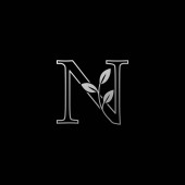 Natura Kwiat początkowy list N Logo, Monogram Elegancja Czarno-białe kwiaty natury ozdoba styl wektor projekt.