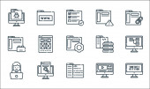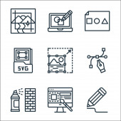 ikony projektów graficznych. zestaw liniowy. zestaw linii wektorowych jakości, takich jak typografia, układ, wybór kolorów, złoty stosunek, klawiatura, mysz, de