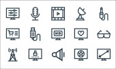 Zdjęcie "ikony komunikacji i linii mediów. zestaw liniowy. wysokiej jakości zestaw linii wektorowych, takich jak słuchawki, odtwarzacz muzyczny, laptop, vhs, godziny, pobierz, aparat fotograficzny, ząb" może być wykorzystywane do celów osobistych i komercyjnych zgodnie z warunkami zakupionej licencji Royalty-free. Obraz jest dostępny do pobrania w jakości wysokiej rozdzielczości do 5760x3840.