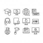 ikony linii akademii. zestaw liniowy. zestaw linii wektorowych jakości, takich jak student, biurko, harmonogram