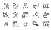 ikony linii kolejowych. zestaw liniowy. zestaw linii wektorowych jakości, takich jak kolej, bilet kolejowy, technik