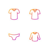 ikony ubrań i linii ubrań. zestaw liniowy. wysokiej jakości zestaw linii wektorowych, takich jak koszulka, bielizna, sukienka