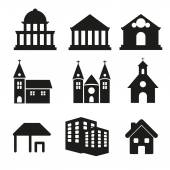 ikony linii zabudowy. zestaw liniowy. wysokiej jakości zestaw linii wektorowych, takich jak hotel, hotel, meczet, magazyn, szkoła, meczet, mieszkanie, sąd