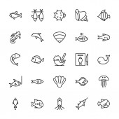 ikony linii owoców morza. zestaw liniowy. zestaw linii wektorowych jakości, takich jak krewetki, meduzy, przegrzebki