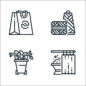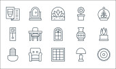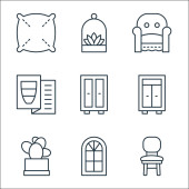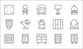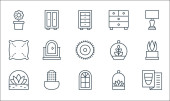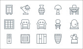 ikony linii wnętrz. zestaw liniowy. wysokiej jakości zestaw linii wektorowych, takich jak podłoga, szafa, wazon, doniczka, owalne lustro, wazon, lampa biurkowa, soczyste