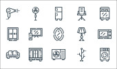 wewnątrz ikon linii domowej. zestaw liniowy. wysokiej jakości zestaw linii wektorowych, takich jak sofa, inteligentna lodówka, suszarka do włosów