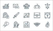 ikony linii pikniku. zestaw liniowy. wysokiej jakości zestaw linii wektorowych, takich jak burger, aparat fotograficzny, samochód, kwiaty, gitara, lemoniada, stół kempingowy, nóż