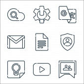 Ikony linii ui. zestaw liniowy. zestaw linii wektorowych jakości, takich jak odblokowanie, bateria, ekran, pobierz, certyfikat, folder, użytkownik, poczta