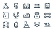 ikony parku wodnego. zestaw liniowy. wysokiej jakości zestaw linii wektorowych, takich jak automat, park wodny, materac, przenośna toaleta, wodospad, strój kąpielowy, krem do opalania, pływak