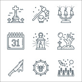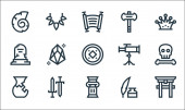 Meksykańskie ikony linii. zestaw liniowy. wysokiej jakości zestaw linii wektorowych, takich jak zampona, meksykański, tequila, dalia, coa de jima, bęben, czaszka, koktajl