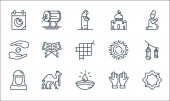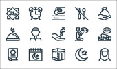 ikony linii Ramadan Kareem. zestaw liniowy. wysokiej jakości zestaw linii wektorowych, takich jak salat, bez napoju, meczet, post, kobieta meczet, meczet, Koran, Koran, darowizna