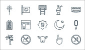 ikony linii Ramadan Kareem. zestaw liniowy. wysokiej jakości linia wektorowa zestaw takich jak prorok, kaaba, módl się, Allah, kobieta Moslem, wudhu, latarnia, salat, nie jeść
