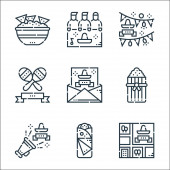 ikony linii cinco de mayo. zestaw liniowy. wysokiej jakości zestaw linii wektorowych, takich jak agawa, meksykański, pi? ata, kwiat, skrzypce, sól i pieprz, flet, akordeon