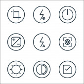 ikony linii kamer. zestaw liniowy. wysokiej jakości zestaw linii wektorowych, takich jak wideo, blok, efekt, błysk, kamera, kontrast, cel, pełny ekran