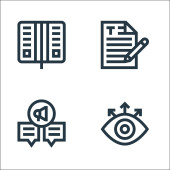 Ikony sławy. zestaw liniowy. wysokiej jakości zestaw linii wektorowych, takich jak magazyn, list miłosny, kamera