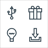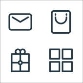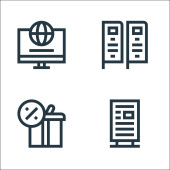 ikony linii niezbędne dla sieci web. zestaw liniowy. zestaw linii wektorowych jakości, takich jak kalendarz, ekran komputera, pinezka, pudełko z upominkami, zamek, stożek, kierunek, drukarka