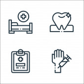 Zdjęcie "ikony linii medycyny. zestaw liniowy. wysokiej jakości zestaw linii wektorowych, takich jak bandaż, książka medyczna, szpital, kropla krwi, złamana noga, tabletki, ząb, zaprawa, schowek" może być wykorzystywane do celów osobistych i komercyjnych zgodnie z warunkami zakupionej licencji Royalty-free. Obraz jest dostępny do pobrania w jakości wysokiej rozdzielczości do 5760x3840.