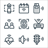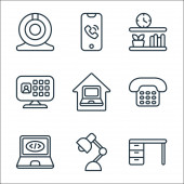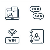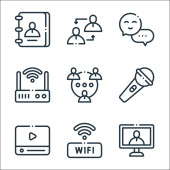 ikony linii komunikacyjnych. zestaw liniowy. wysokiej jakości zestaw linii wektorowych, takich jak modem, zapis, smartfon