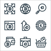 ikony linii kryptowaluta. zestaw liniowy. wysokiej jakości zestaw linii wektorowych, takich jak wykres pie, bitcoin, blockchain, bitcoin, nagroda, bitcoin, wymiana, torba na zakupy,