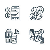 ikony linii biznesowych i finansowych. zestaw liniowy. zestaw linii wektorowych jakości, takich jak gotówka, statystyki, dochód, pożyczka secu, pieniądze, wynagrodzenie, wymiana walut,