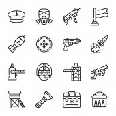 ikony linii gier wideo. zestaw liniowy. zestaw linii wektorowych jakości, takich jak gra akcji, airdrop, platforma, loot box, pierwsza pomoc, pistolet, konsola do gier, miecz