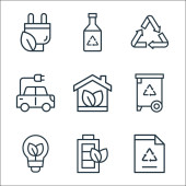 ikony linii zmian klimatycznych. zestaw liniowy. wysokiej jakości zestaw linii wektorowych, takich jak żarówka, dwutlenek węgla, wózek górniczy