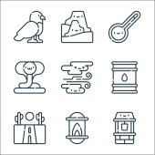 Meksykańskie ikony linii. zestaw liniowy. wysokiej jakości zestaw linii wektorowych, takich jak wąż, kukurydza, bęben, burrito, kukulkan, meksykański, meksykański, tepache