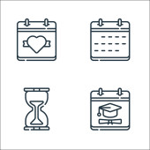 ikony kalendarza i linii daty. zestaw liniowy. wysokiej jakości zestaw linii wektorowych, takich jak zegarek na rękę, Boże Narodzenie, spotkanie, kalendarz, kalendarz, ukończenie szkoły, zegarek