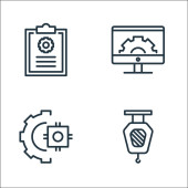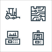 ikony linii produkcyjnych. zestaw liniowy. wysokiej jakości zestaw linii wektorowych, takich jak laptop, dźwignia sterująca, przenośnik taśmowy