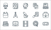 ikony linii szkolnej. zestaw liniowy. zestaw linii wektorowych jakości, takich jak monitor, zegar, stopnie, książka, plecak, kalendarz, uniwersytet, kompas