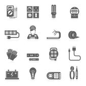 elektronarzędzia i ikony linii. zestaw liniowy. wysokiej jakości zestaw linii wektorowych, takich jak obwód elektryczny, rezystor, tester, bateria, g, ryby, skrzynka bezpieczników, gniazdko telefoniczne