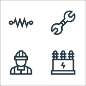 elektronarzędzia i ikony linii. zestaw liniowy. wysokiej jakości zestaw linii wektorowych, takich jak ryby, biegun elektryczny, wtyczka, moc, kabel, żarówka, elektryczność, kabel
