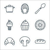 desery cukierki linii ikon. zestaw liniowy. wysokiej jakości zestaw linii wektorowych, takich jak, bułka cynamonowa, rogalik, pączek, babeczka, słodki, kubek lodów, ciasteczka