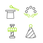 ikony linii cyrkowej. zestaw liniowy. wysokiej jakości zestaw linii wektorowych, takich jak scena, napój bezalkoholowy, pierścień ognia