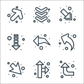 ikony linii interfejsu. zestaw liniowy. zestaw linii wektorowych jakości, takich jak ustawienie, w górę po lewej stronie, równowaga