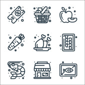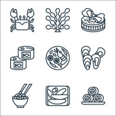 ikony linii owoców morza. zestaw liniowy. wysokiej jakości zestaw linii wektorowych, takich jak krewetki, sushi, makaron