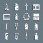 ikony linii hotelowej. zestaw liniowy. wysokiej jakości zestaw linii wektorowych, takich jak ręka, ręka, suszarka, lodówka, kapcie, szczoteczka do zębów, śniadanie, grzebień