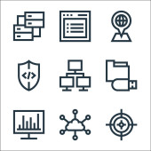 wznowić pracę ikony linii. zestaw liniowy. zestaw linii wektorowych jakości, takich jak drukarka, termin, ochrona